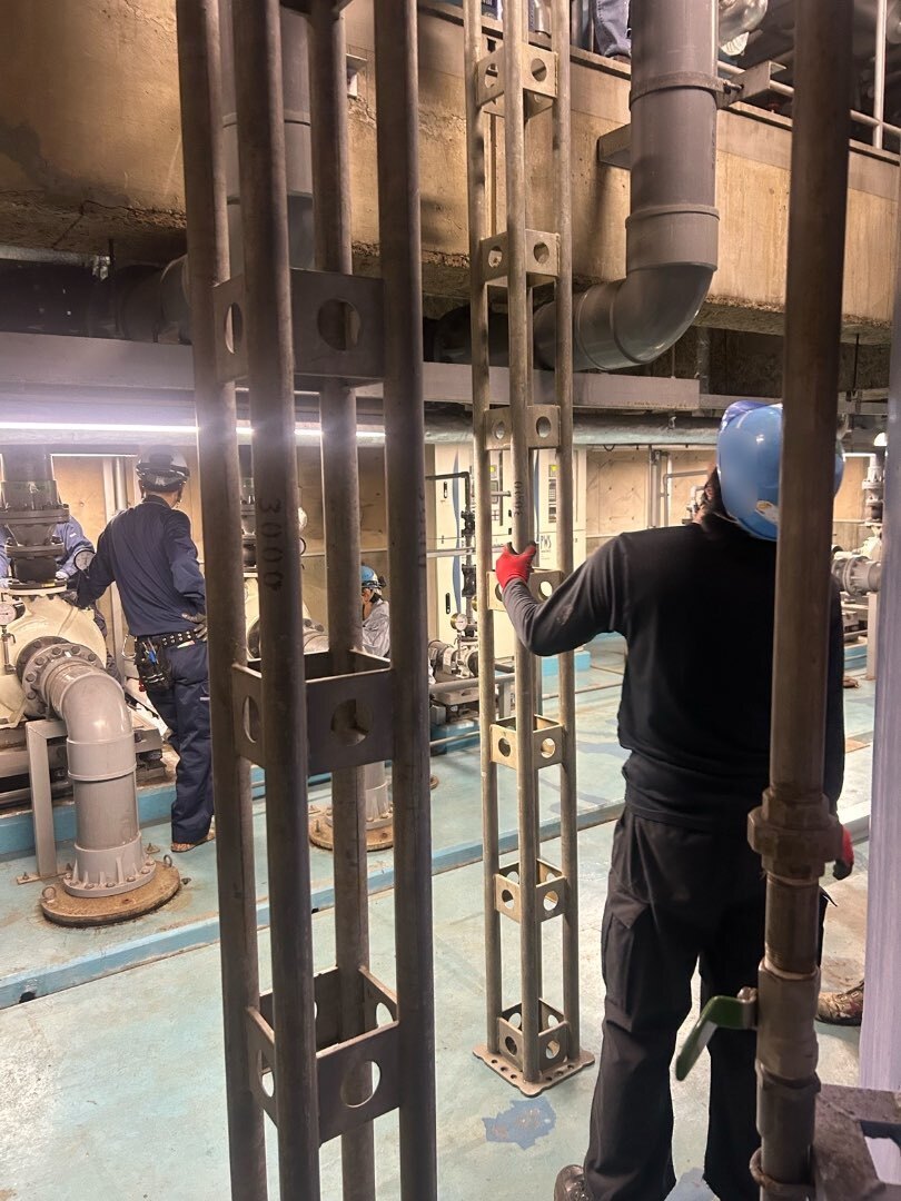 ・新規ポンプ7台の設置作業(搬入〜据付)