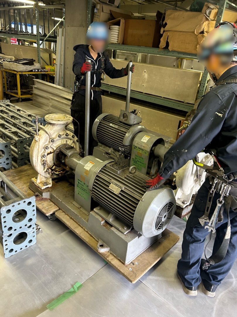 特に大型ポンプは重量があるため、簡単に取り外しができず、安全に搬出できる体制づくり が課題となっていました。